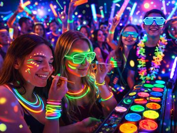 Guests load up on glow sticks, neon accessories, and light-up party pieces — and the best part? They don’t just grab it… they GLOW IT UP.
