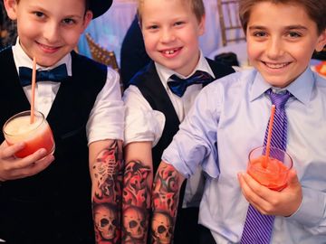The Ink Bar is one of those stations that instantly brings the energy up. Guests choose their design, pick their color, and in minutes they’re walking away with a custom airbrush tattoo that looks real — but washes off when they’re ready.