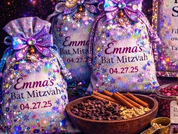 Guests create their own custom Havdalah spice bag by choosing from a beautiful blend of aromatic spices and botanicals. Cinnamon, cloves, dried orange peel, lavender — layered together to create something that smells incredible and feels meaningful.